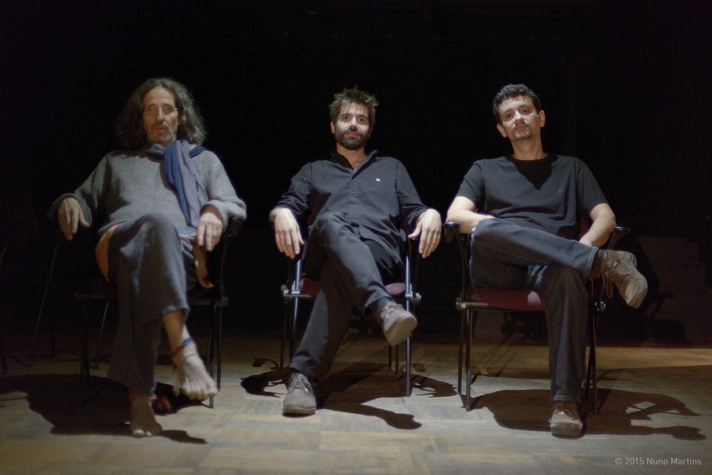 Cellist Miguel Mira is the veteran of the three. A multi-disciplinary artist who plays jazz and improvised for many years now. Joao Camoes (violin) is classically trained but discovered improvised music after moving to Lisboa. He is involved in numerous initiatives and has also his own projects around (Open Field String Trio, Nuovo Camerata, etc.). Pianist Pinheiro also has a background in classical music before entering improvised territories.